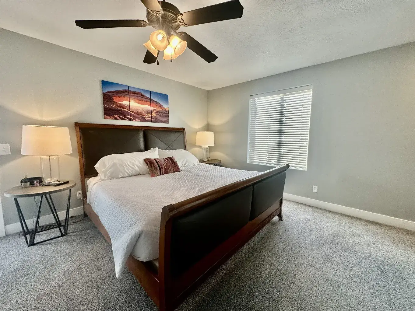 3 Bedroom 3.5 Baths with year-round private heated pool and hot tub. The home is located close to everything in the middle of Moab valley. This luxury home designed, and custom built as a vacation rental will meet all your expectations. Great for 3 couples having your own suites. The property has 2 identical homes next to each other, they are separate and can be rented together. They are very private when you only rent one side. Located 5 minutes from downtown restaurants and shopping and 10 minutes to Arches National park is the perfect location for your trip to Moab. This contemporary masterpiece is stocked with everything you will need to make your stay with us a perfect 10. This homes comes with a 2 car garage and plenty of parking for all your toys. You will enjoy all the views Moab has to offer with large patios and custom built in fire pit for those amazing Moab nights with unmatched star gazing. Note: We do have additional homes many with private pools on our direct site exclusiveretreats