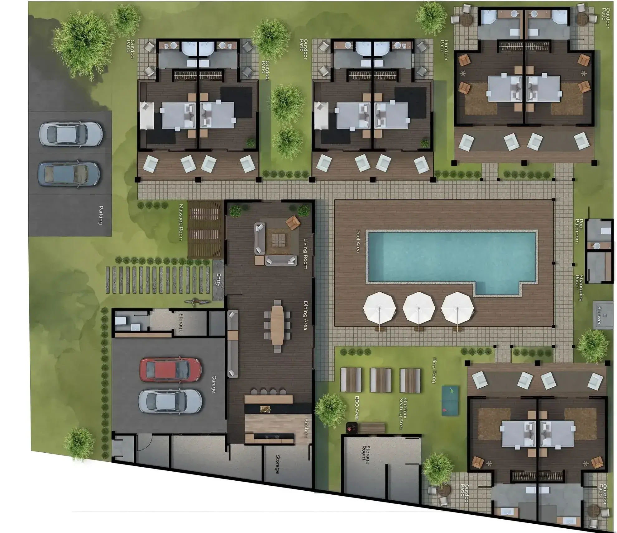The Villa has multiple bedding options that can be adjusted to your group's requirements. Please read room descriptions carefully.
