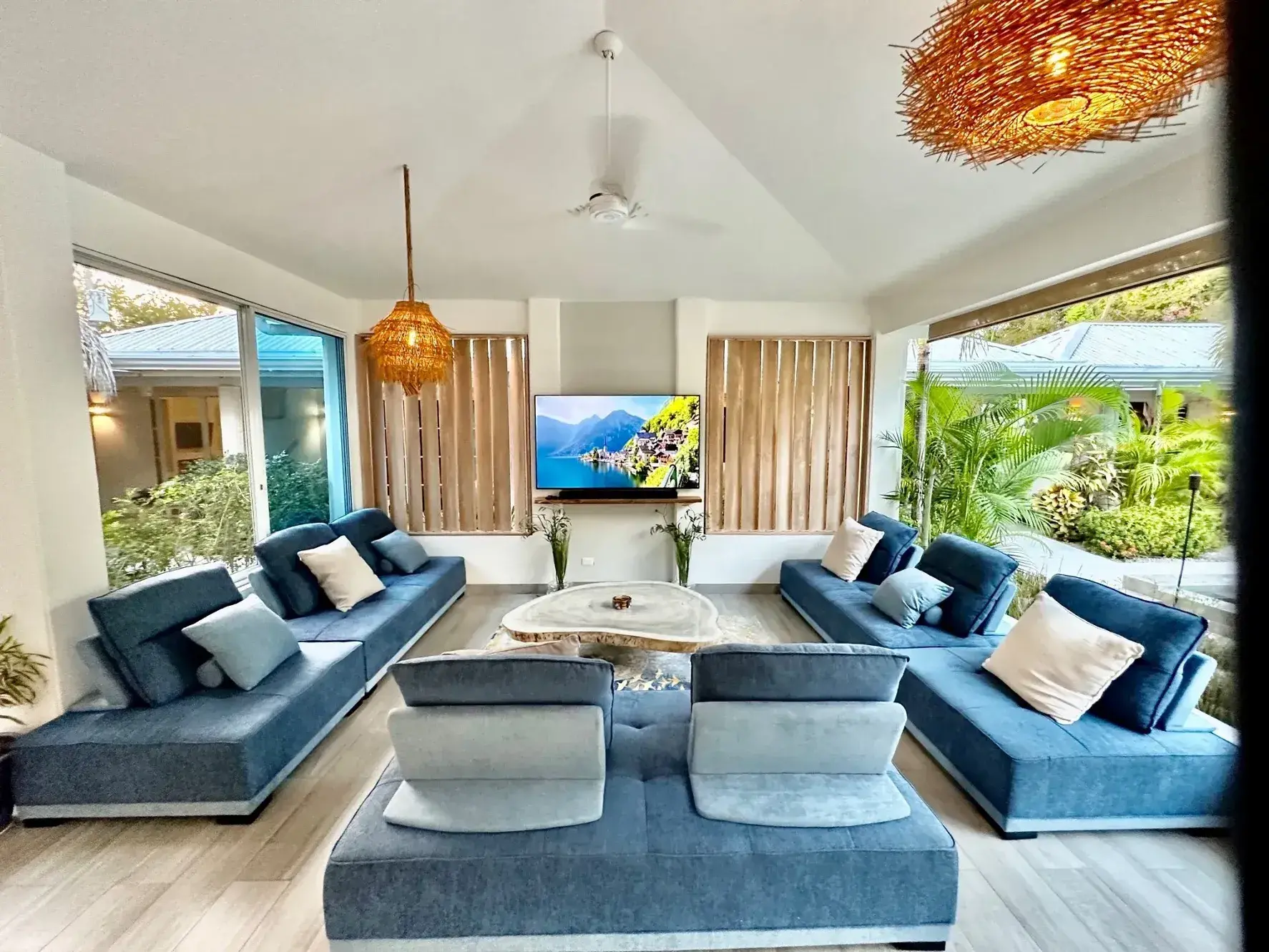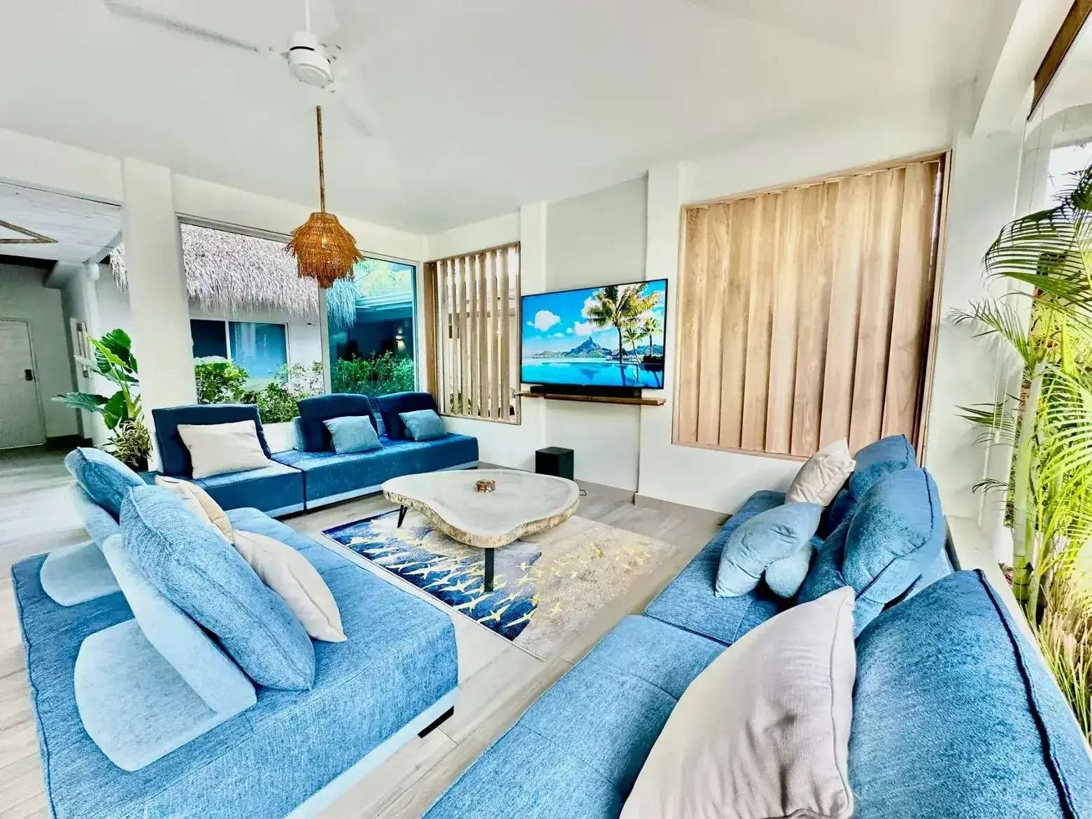 LIVING ROOM: This large living space offers a plenty of room for your group comfortable couches and chairs with lots of table space. Enjoy your favorite show on a 75" Smart TV and entertainment system. Perfect for watching movies or the game. We have Direct TV with a premier package for plenty of options.