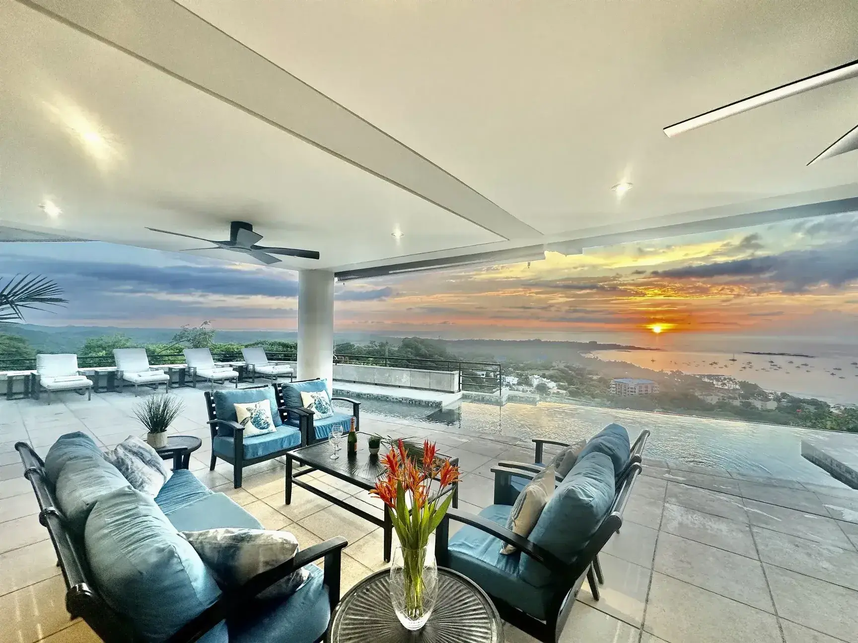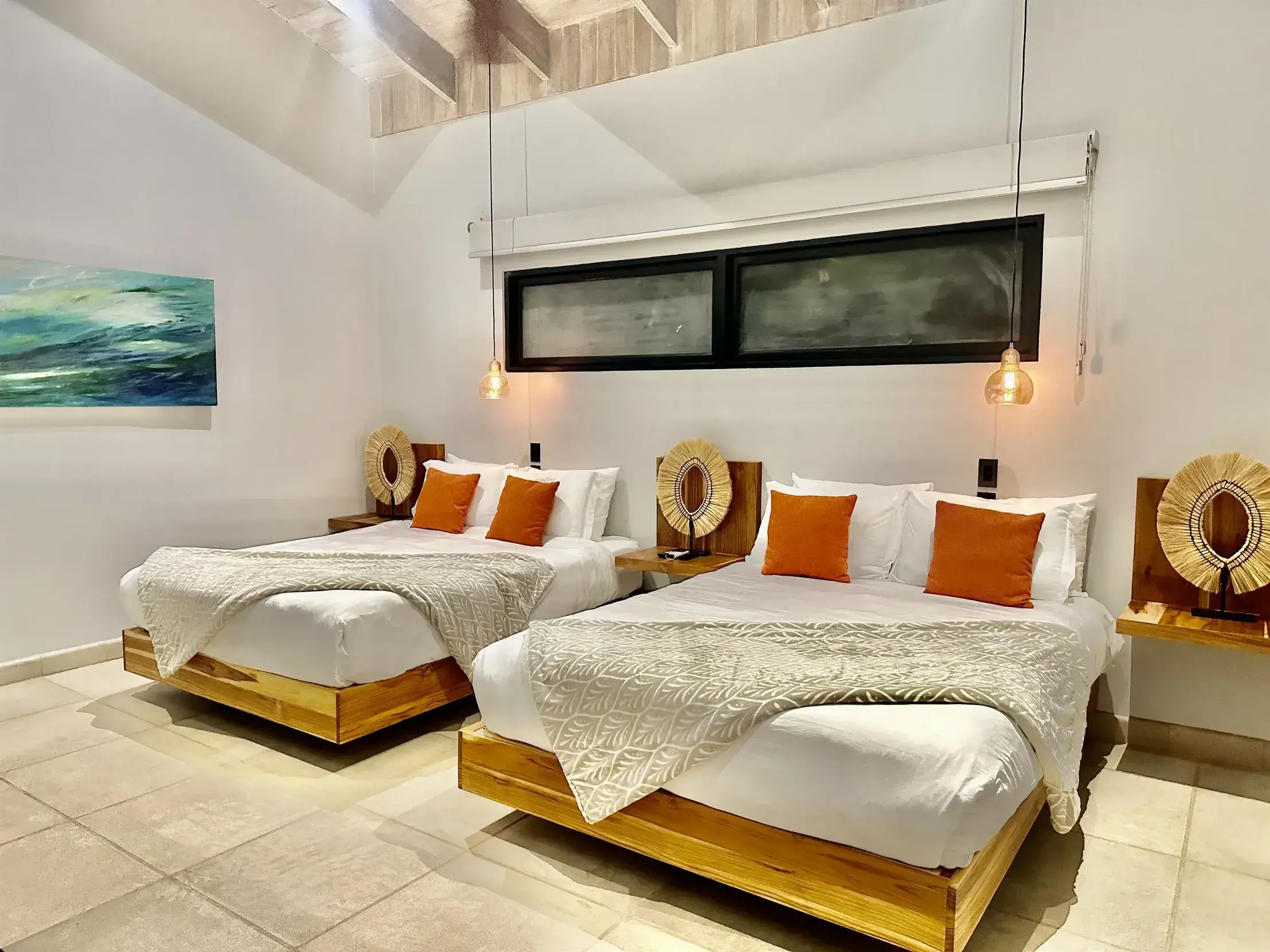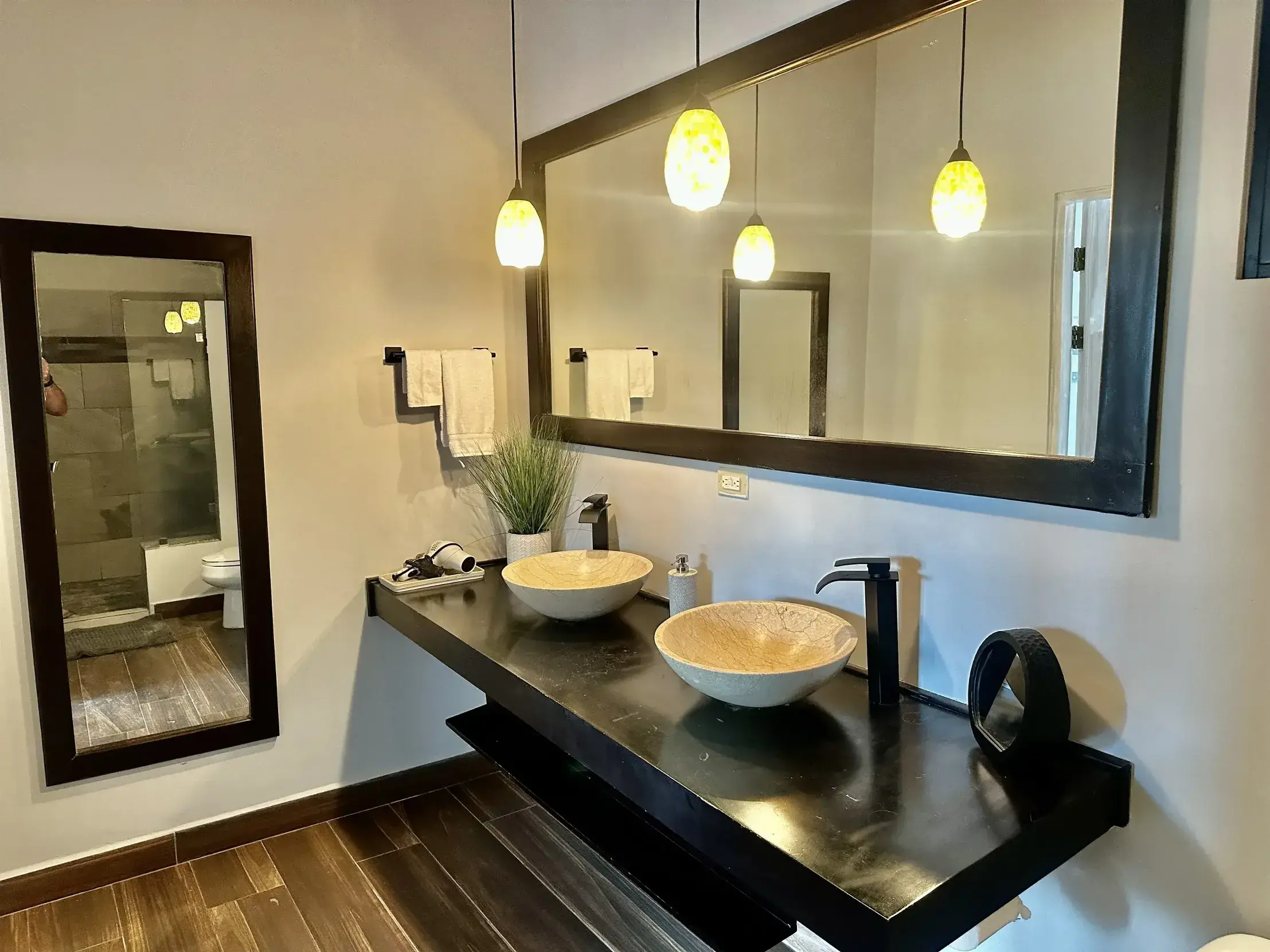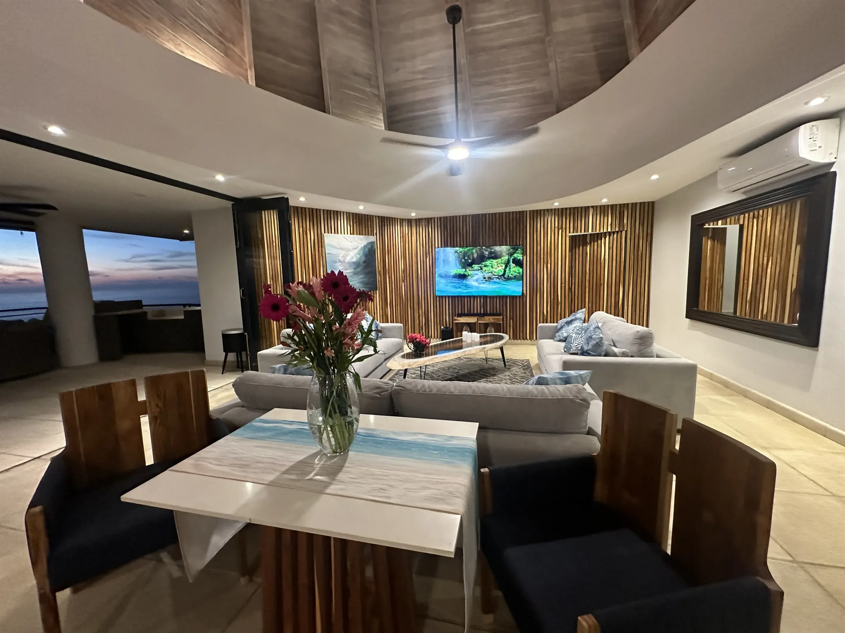 Nestled at the meeting point of the sky and sea, overlooking the glistening waters of Tamarindo Bay in Costa Rica, Villa Paraiso promises breathtaking sunrises and awe-inspiring sunsets. This idyllic vacation villa encompasses every element you could desire for an ideal getaway. Boasting 8 bedrooms and 8 ½ baths, each exquisitely designed room offers an en suite bathroom with double sinks, 50" smart TVs, premium beds and linens, and stunning decor and finishes.