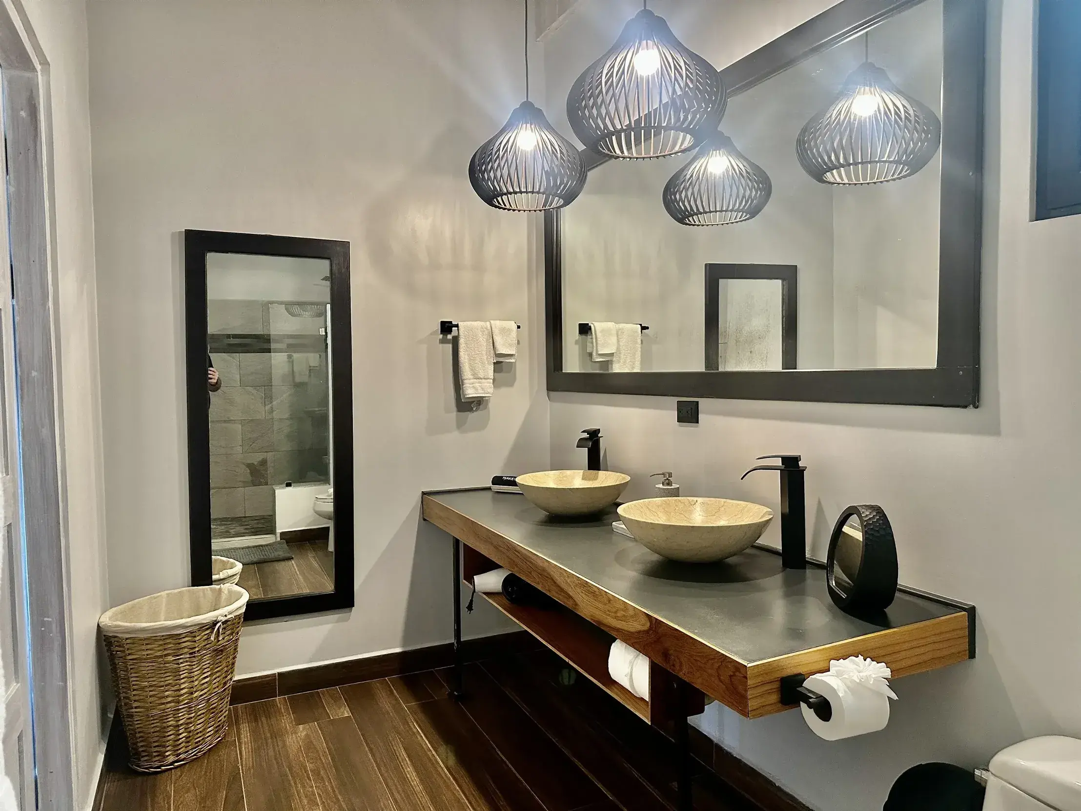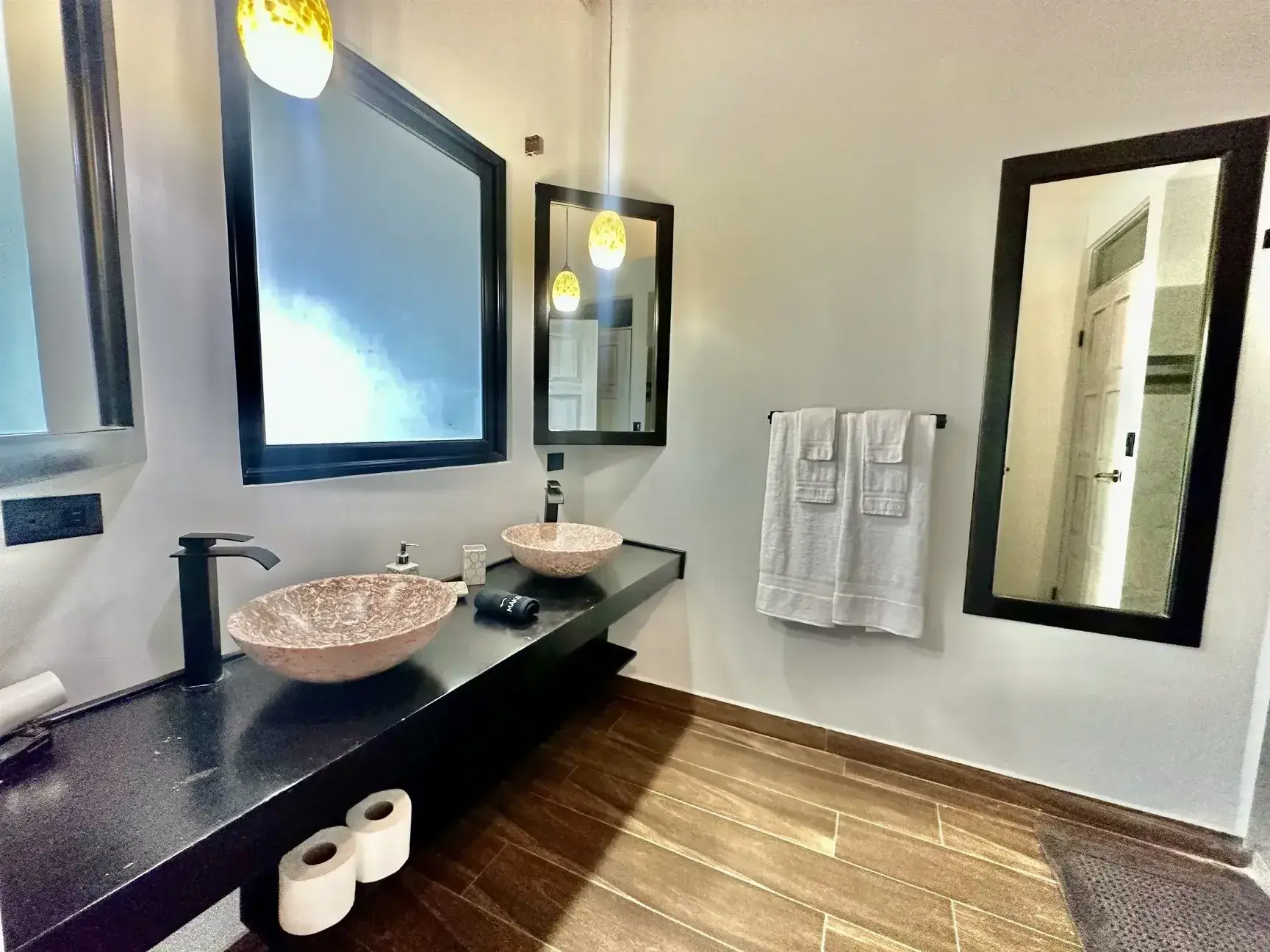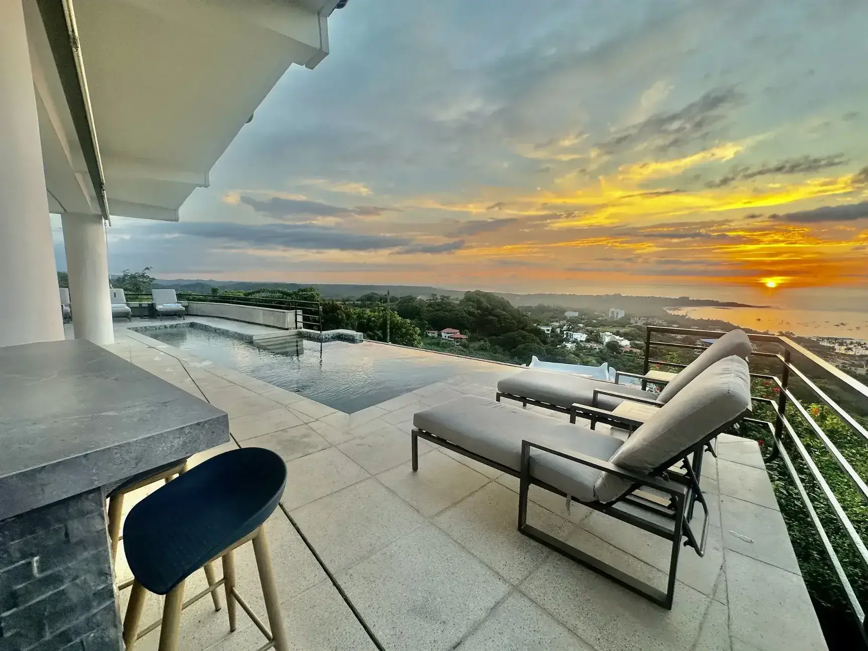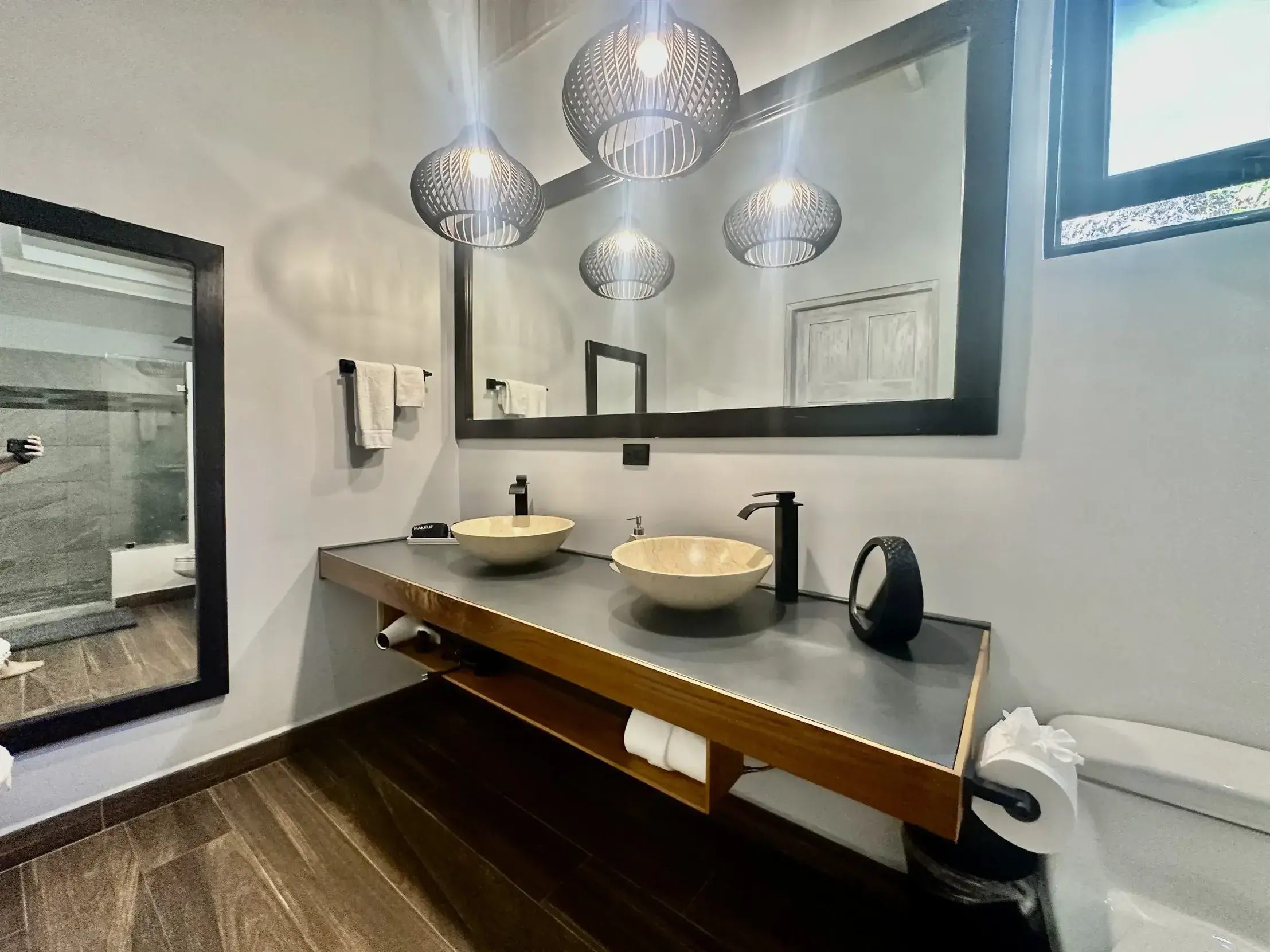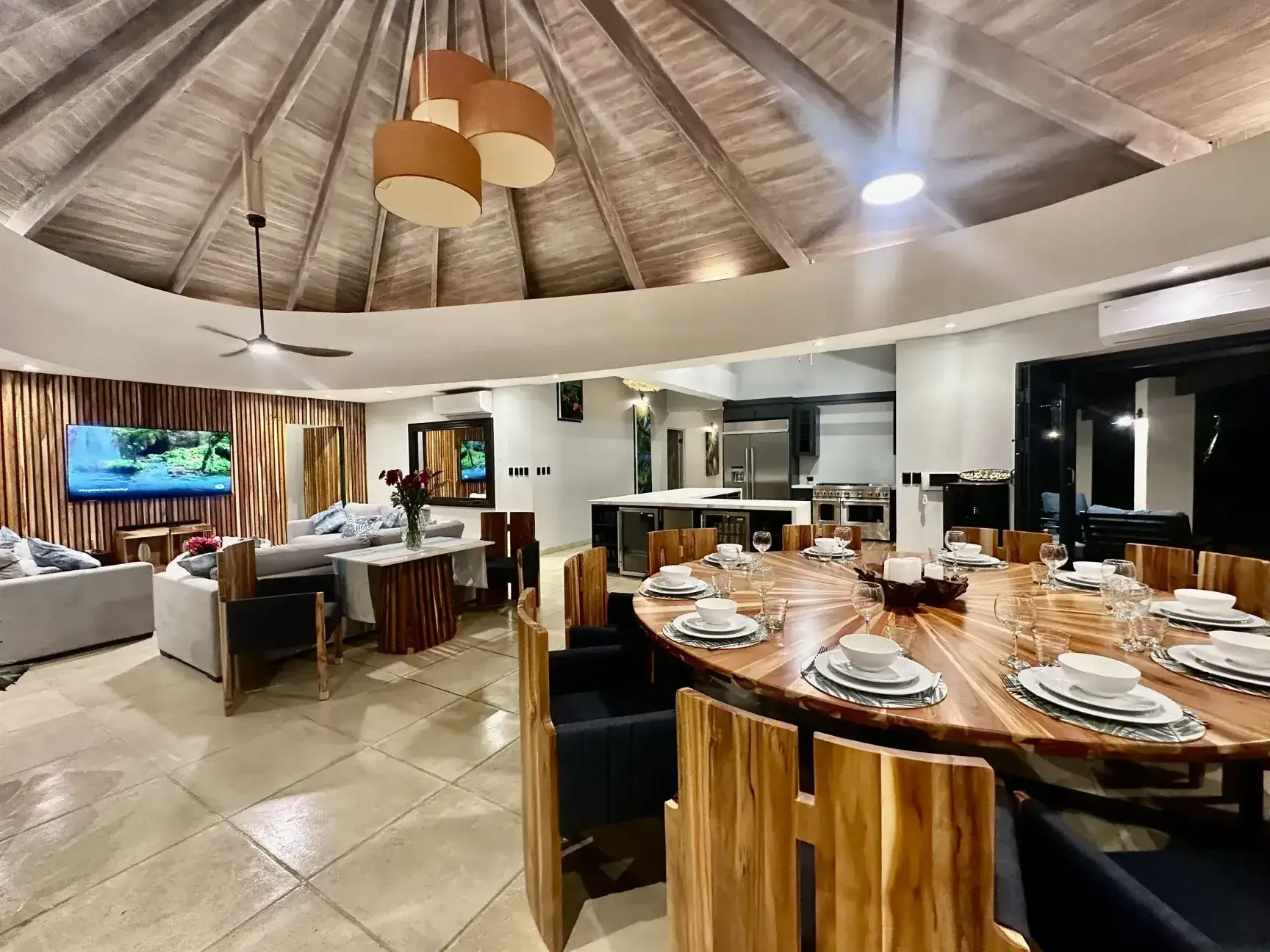Nestled at the meeting point of the sky and sea, overlooking the glistening waters of Tamarindo Bay in Costa Rica, Villa Paraiso promises breathtaking sunrises and awe-inspiring sunsets. This idyllic vacation villa encompasses every element you could desire for an ideal getaway. Boasting 8 bedrooms and 8 ½ baths, each exquisitely designed room offers an en suite bathroom with double sinks, 50" smart TVs, premium beds and linens, and stunning decor and finishes.