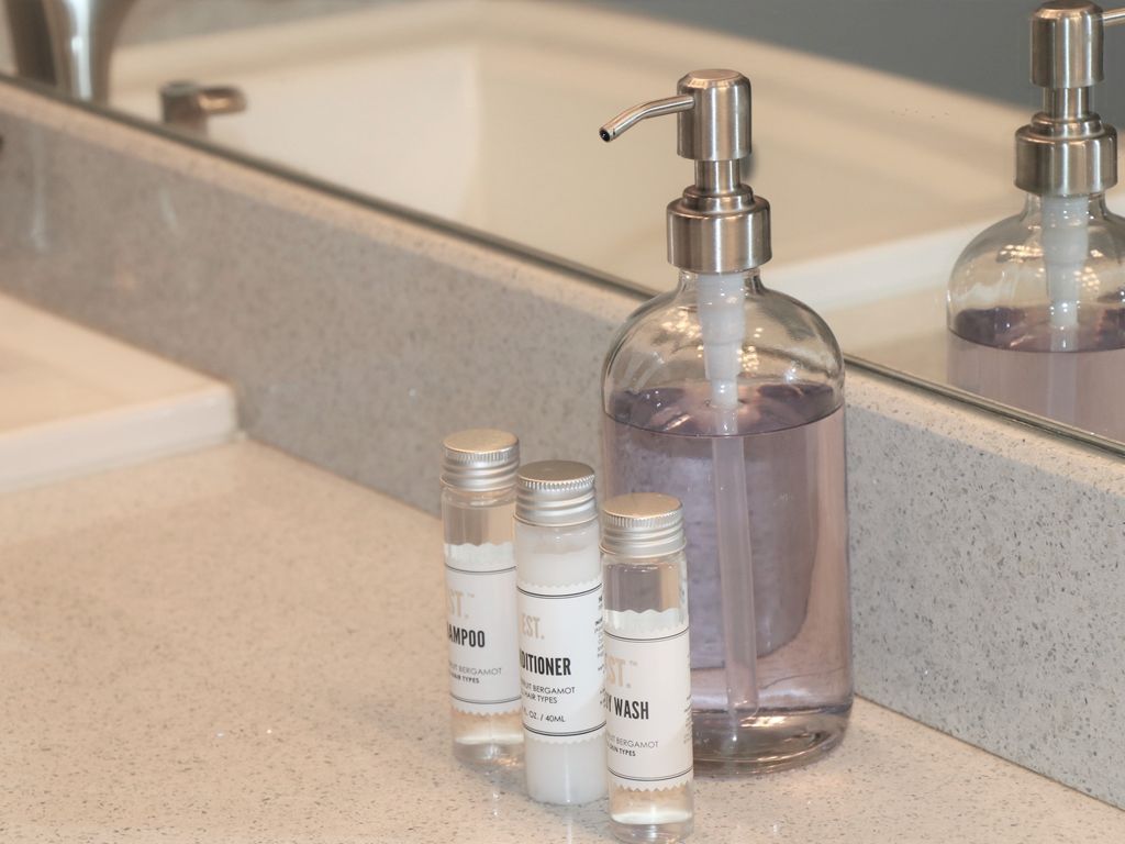 GUEST AMENITIES: We provide shampoo, conditioner, body wash, lotion, bath salts, hair dryers and makeup remover in all the bathrooms. There is a high chair and Pack- n- Play for the little ones.