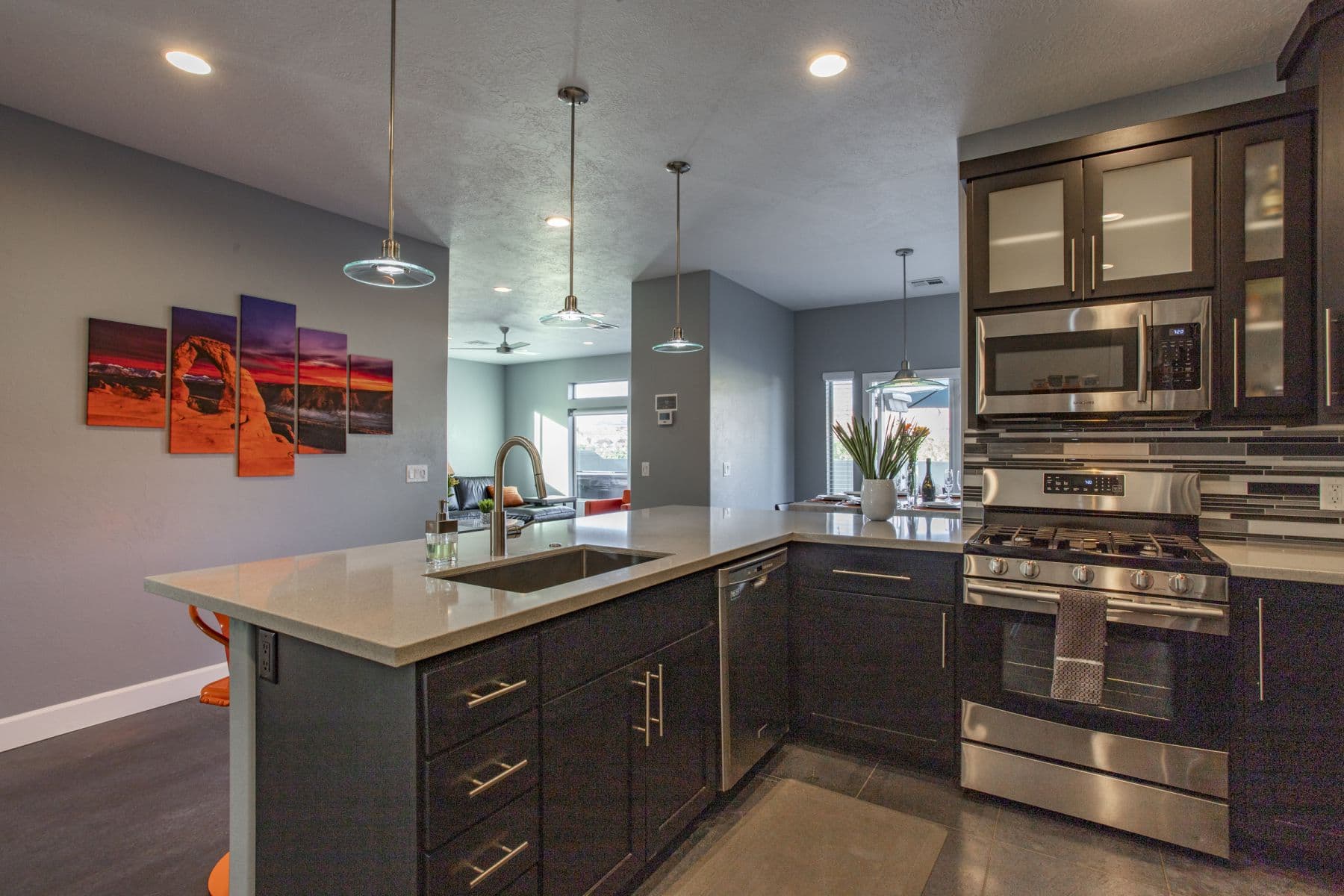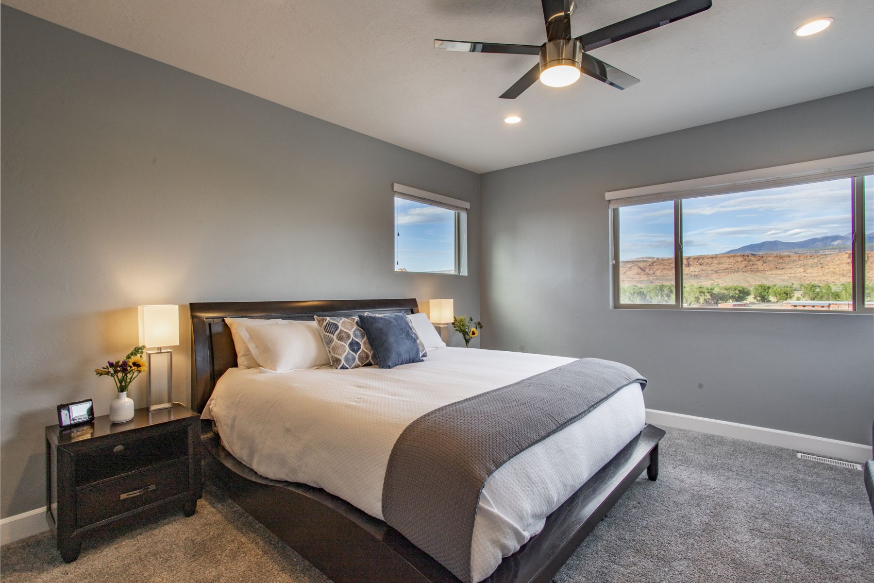 3 Bedroom 3.5 Baths Large Luxury home designed and custom built as a Luxury vacation rental. Great for 3 Couples having your own suites or will accommodate large groups. Located 5 minutes from down town Moab and 10 minutes to Arches National park is the perfect location for your trip to Moab. This contemporary masterpiece is stocked with everything you will need to make your stay with us a perfect 10. This homes comes with an oversized 2 car garage with automatic Jeep cover lift and plenty of parking for all your toys. You will enjoy all the views Moab has to offer with large patios and custom built in fire pit for those amazing Moab nights with unmatched star gazing. Note: We do offer additional homes many with private pools at our direct site exclusiveretreats