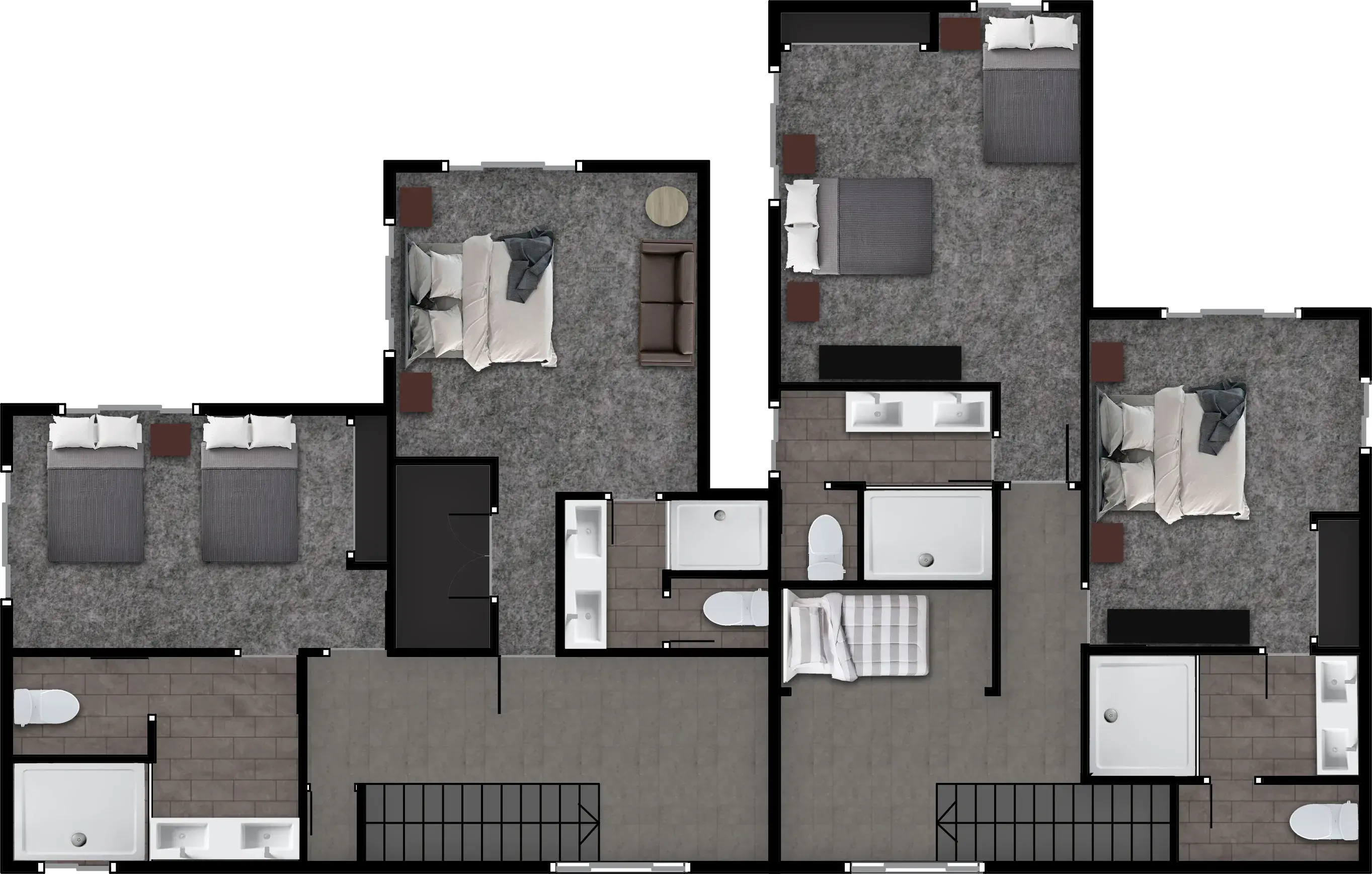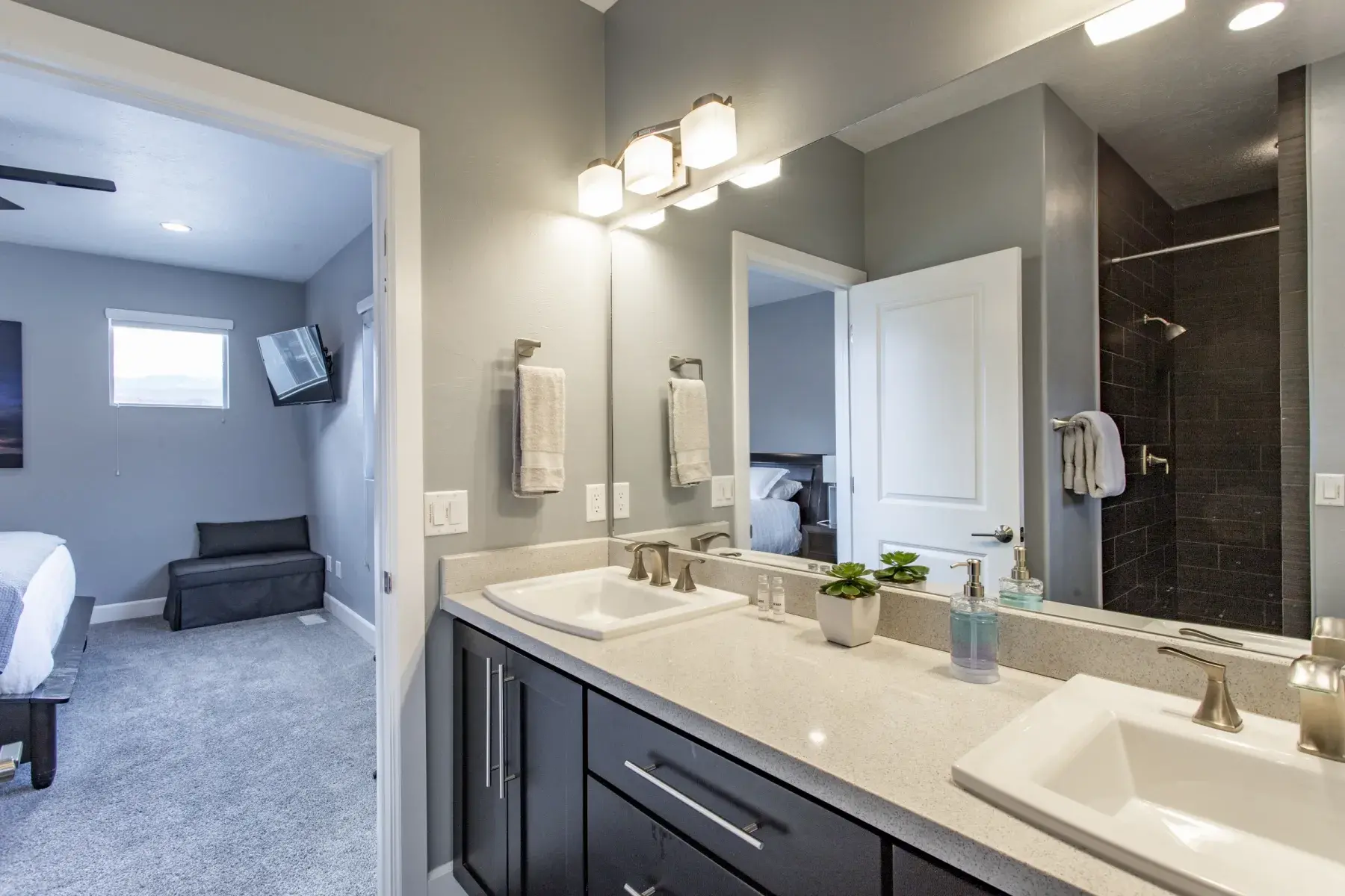 SUITE #5 - Two Queen Beds with en-suite bath, this suite offers large flat screen TV and large closet and luxurious spa like shower. Watch your favorite shows on a 43" Flat Screen Smart TV.