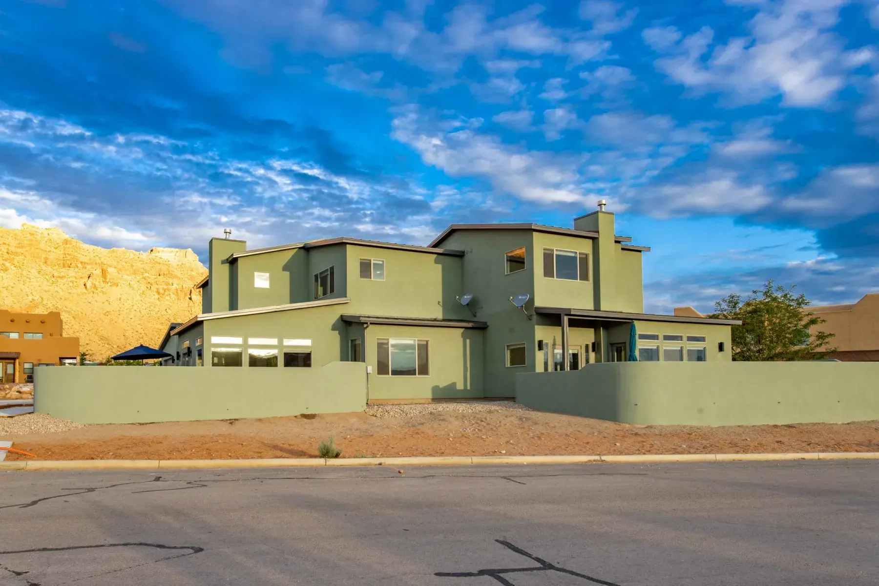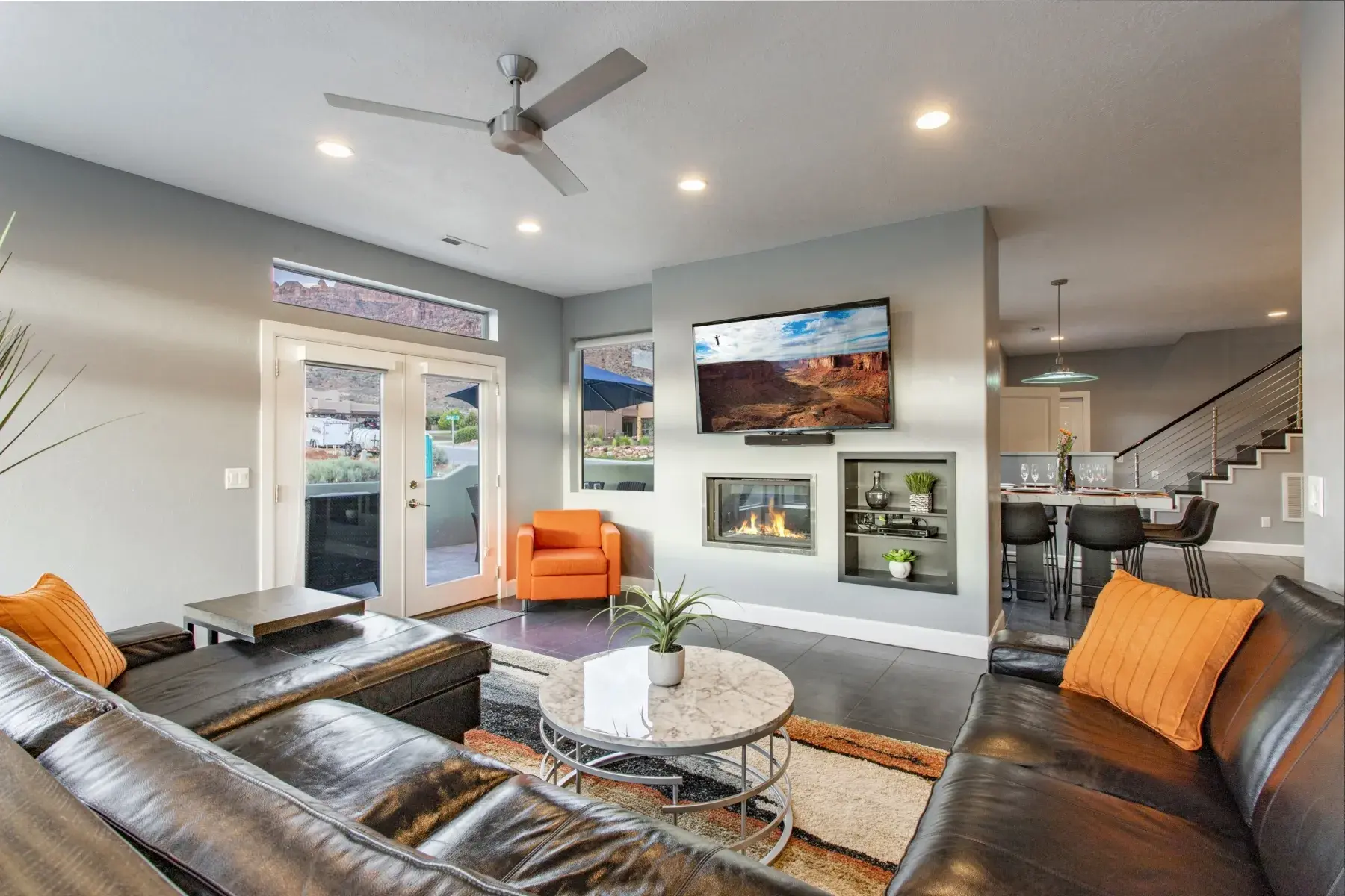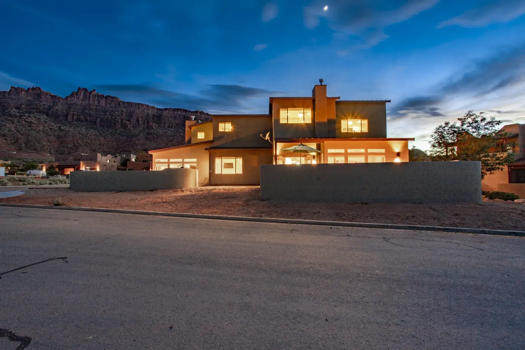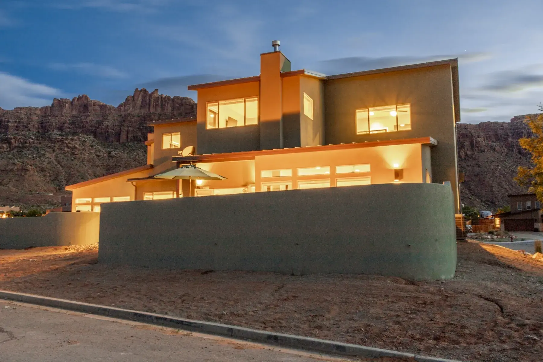 This Large home is made up of 2 attached 3 Bedroom 3.5 Baths Large Luxury homes designed and custom built as a Luxury vacation rental. They are connected for the group to access wrap around decks with 2 hot tubs and built so everyone has great sleeping accommodations. This homes comes with an oversized 4 car garage with automatic Jeep cover lift and plenty of parking for all your toys. Your group will appreciate the 5000 plus square feet of living and 2000 feet of outdoor living space. This property is perfect for very large groups or can be booked just one side at a time with sleeping at 12 persons per side. Our focus with this property is that everyone is comfortable with Luxury accommodations so no one feels they got the short end of the stick. The home is located 5 minutes from down town Moab and 10 minutes to Arches National park is the perfect location for your trip to Moab. This contemporary masterpiece is stock with everything you will need to make your stay with us a perfect 10. You will enjoy all the views Moab has to offer with large patios and custom built in fire pit for those amazing Moab nights with unmatched star gazing. Note: We have additional large homes with private pools at exclusiveretreats direct site.
